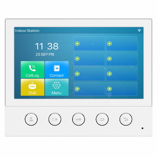 Fanvil i53W je SIP vnitřní stanice se 7palcovým barevným dotykovým displejem s 5 funkčními tlačítky, která lze použít v různých vnitřních scénářích.